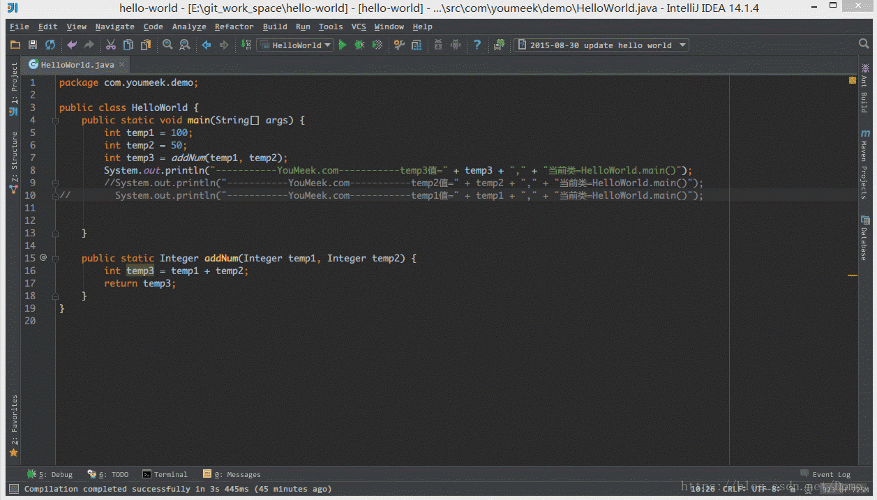 如上图 Gif 所示,默认 IntelliJ IDEA 对于 Java 代码的单行注释是把注释的斜杠放在行数的最开头。