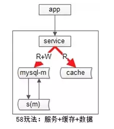 业务层不直接面向db和cache,服务层屏蔽了底层db、cache的复杂性。为什么要引入服务层,今天不展开,采用了“服务+数据库+缓存一套”的方式提供数据访问,用cache提高读性能。