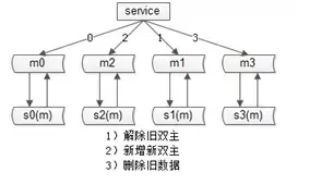 原MOD2为偶的部分,现在会MOD4余0或者2;原MOD2为奇的部分,现在会MOD4余1或者3;数据不需要迁移,同时,双主互相同步,一遍是余0,一边余2,两边数据同步也不会冲突,秒级完成扩容!