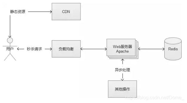 通常静态HTML等内容,是通过CDN的部署,一般压力不大,核心瓶颈实际上在后台请求接口上。这个后端接口,必须能够支持高并发请求,同时,非常重要的一点,必须尽可能“快”,在最短的时间里返回用户的请求结果。为了实现尽可能快这一点,接口的后端存储使用内存级别的操作会更好一点。仍然直接面向MySQL之类的存储是不合适的,如果有这种复杂业务的需求,都建议采用异步写入。