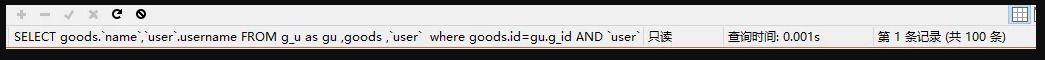 查询的时候为了更加人性化,通常不需要显示这些无意义的id,需要的是商品名称和用户姓名,假设我们还是只采用最原始的无第三方表的方式进行查询的话,效率会比较底下: