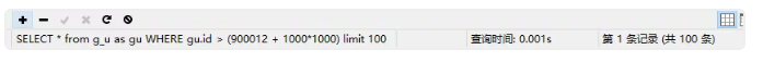 SELECT * FROM g_u WHERE id >=(SELECT id FROM g_u LIMIT 1850000,1) ORDER BY id LIMIT 100