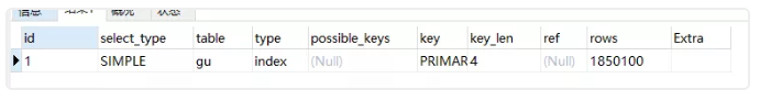 由于我们查询的时候,使用的是根据主键索引id进行排序,因此查询的时候key一项为PRIMARY。