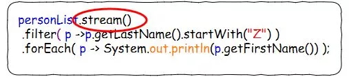 由于静态函数其实只是对List进行了一通操作,这里我们可以甩掉静态函数,直接使用stream()特性来完成。stream()的几个方法都是接受Predicate<T>,Consumer<T>等参数的(java.util.stream (Java Platform SE 8 ))。你理解了上面的内容,stream()这里就非常好理解了,并不需要多做解释。