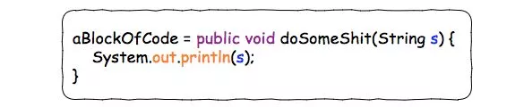 如果你想把“一块代码”赋给一个Java变量,应该怎么做呢?