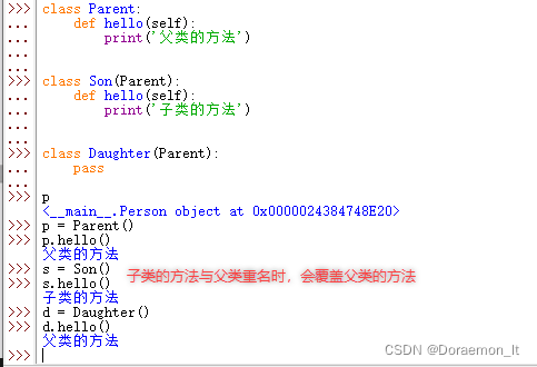 4.继承:子类方法名和父类方法重名时,仍需要继承父类方法