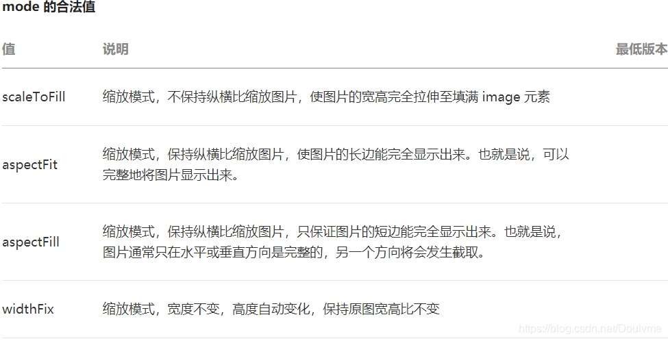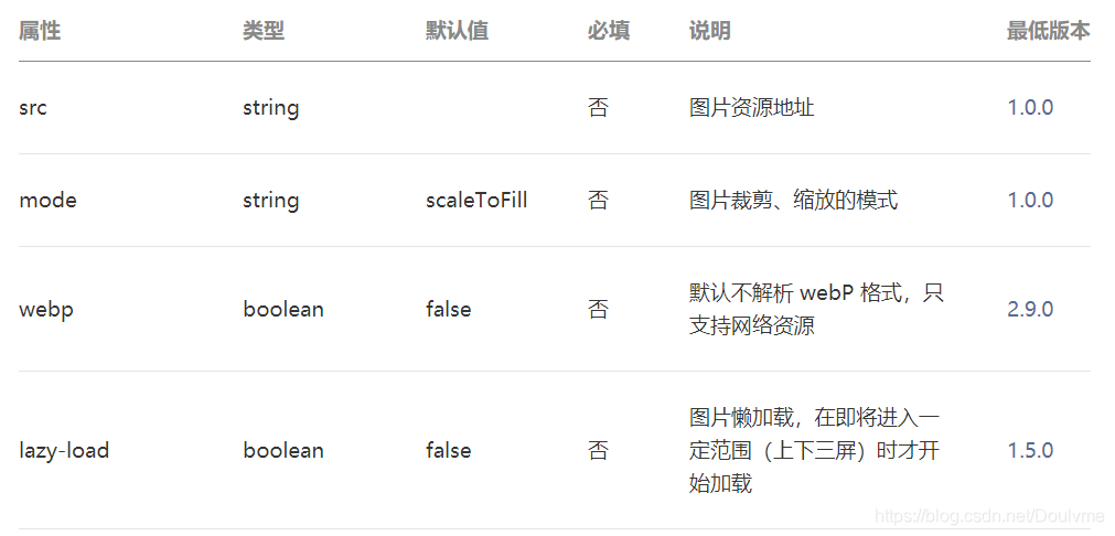 与html中的img标签类似,都是用于载入图片的标签组件,src图片的路径,image组件自带了mode图片裁剪缩放模式。