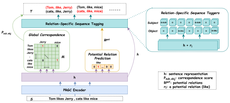 [实体关系抽取|顶刊论文]PRGC:Potential Relation and Global Correspondence Based Joint Relational Triple Extra 这篇文章,将实体关系抽取,分解成了三部分:1. 抽取潜在关系,减少计算复杂度;2. 对于主语和宾语,使用全连接网络进行抽取出来;3. 列举所有的主宾对,保留超过阈值的三元组对。然后对于保留下来的三元组对,对照主语宾语的标记,保留正确的三元组。个人收获是,在抽取的过程中,可以使用类似这篇文章`索引`的思想。即,先确定某些东西,然后穷举所有排列组合,基于已知的内容再确定结果。