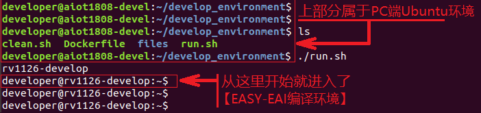 在PC端Ubuntu系统中执行run脚本,进入EASY-EAI编译环境,具体如下所示。