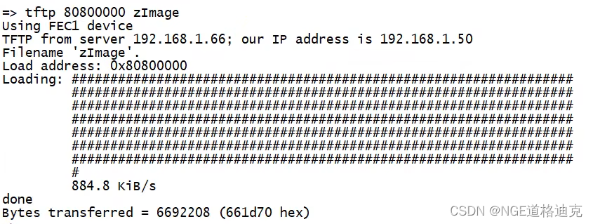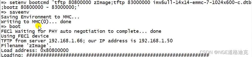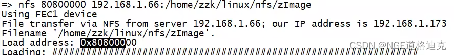 - 终端uboot启动nfs指令,nfs 80800000 192.168.1.66:/home/hyg/linux/nfs/zImag