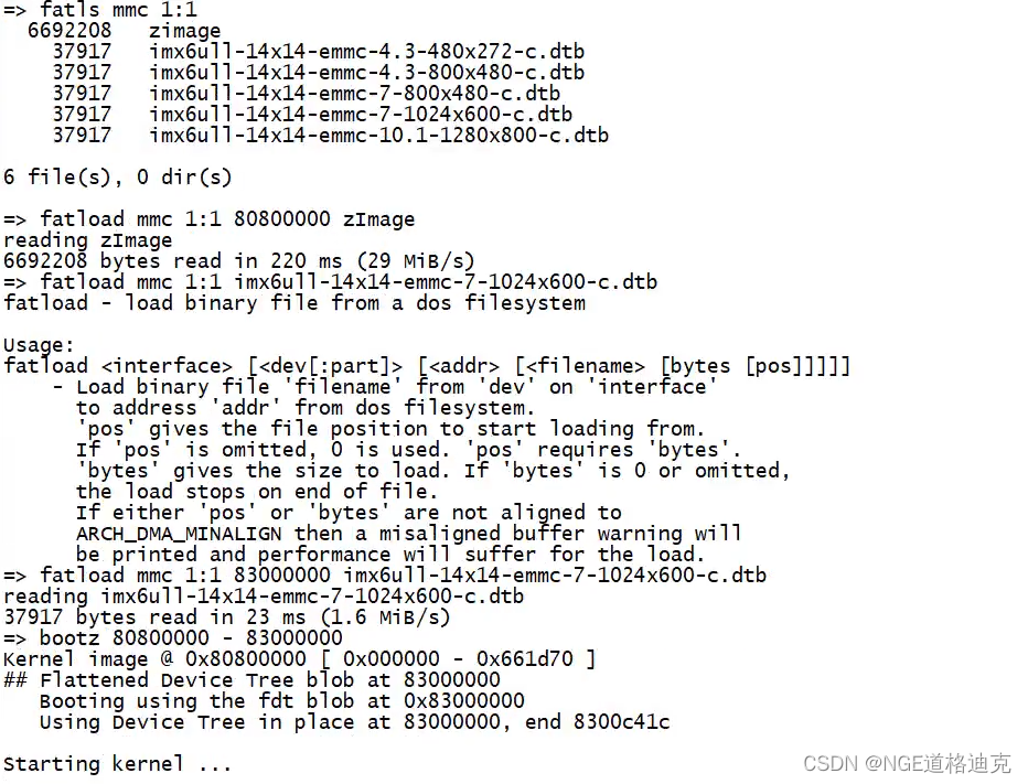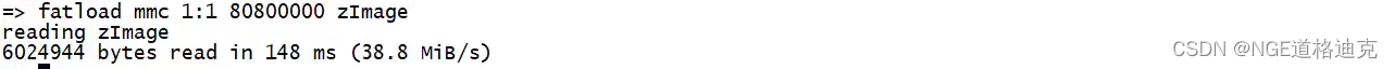 3. fatload mmc 1:1 80800000 zImage //将EMMC分区1中zImage文件读到DRAM中的0x80800000地址处