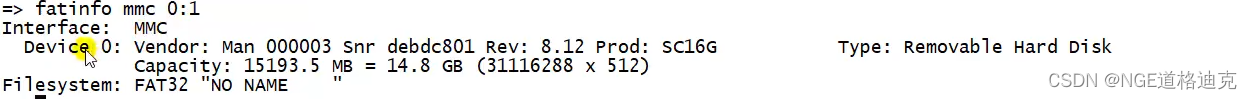 1. fatinfo mmc 0:1 //查看SD卡第二个分区【也可以说1分区】