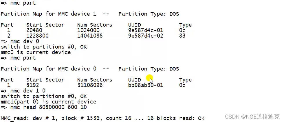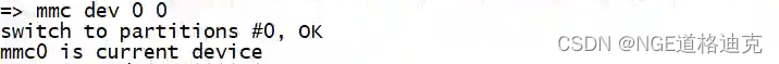 4. mmc dev 1 0 --- 切换到MMC分区0