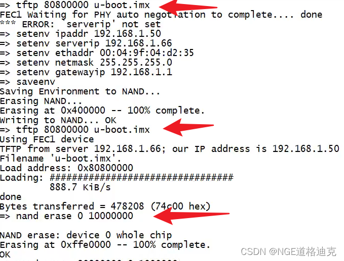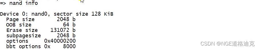 3. nand earse.part[]partition/chip --- 擦除和写入一起eg: nand erase 0x0 0x100000