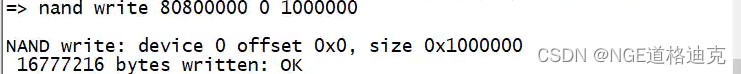 4. nand write addr off size --- 将数据首地址addr处开始size大小写入NAND目标地址off里