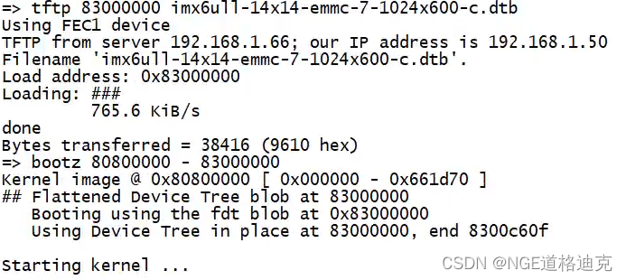 4. tftp 83000000 imx6_gtk_emmc_xx.dtb