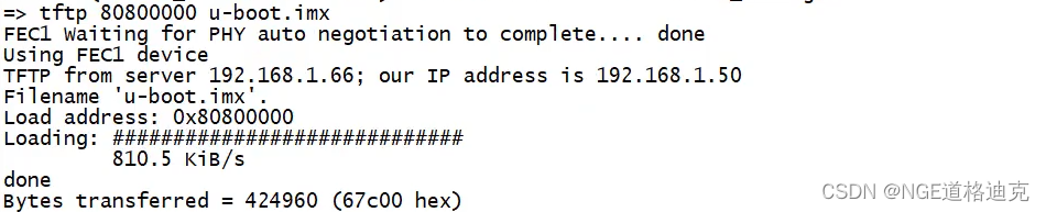 2. 进入终端uboot使用tftp下载uboot.imx到8080 0000