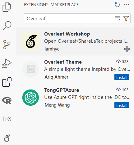 Overleaf是一个在线的LaTeX编译环境。我们也可以在本地VS code配置Overleaf的账户。实现线上线下同步。也只需安装overleaf workshop插件。