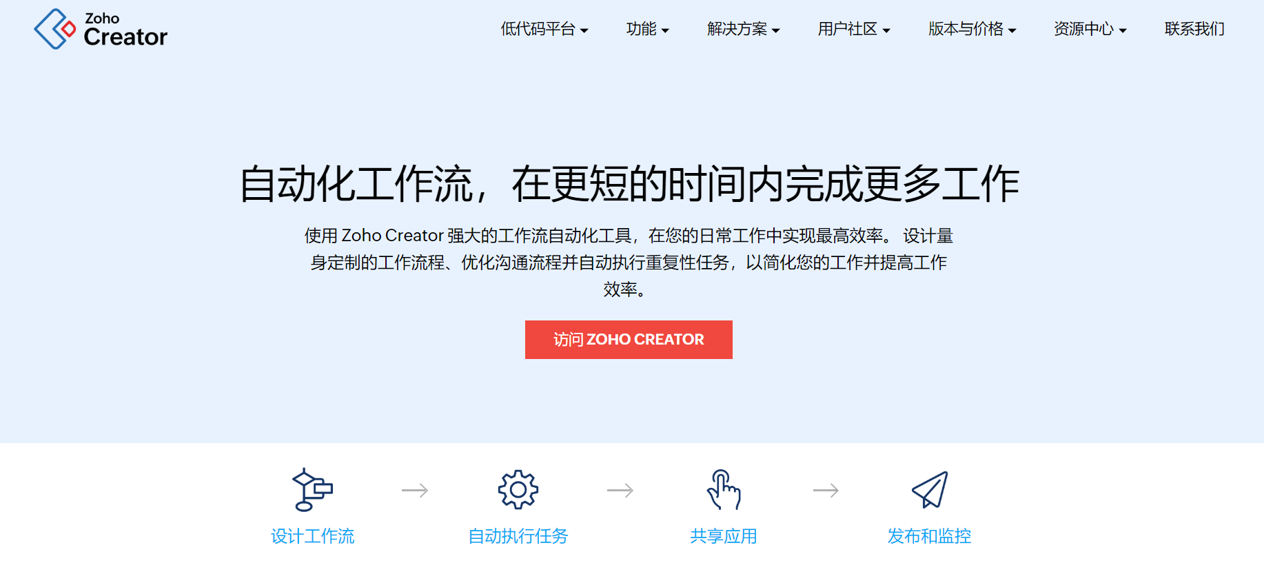 1、Zoho Creator:作为一款强大的低代码开发平台,Zoho Creator以其高效稳定、功能丰富且易于使用的特点,在众多工作流自动化工具中脱颖而出。它集成了强大的流程引擎和表单集成引擎,能够助力企业快速实现业务流程自动化,无需大量代码开发,节省时间和人力成本。