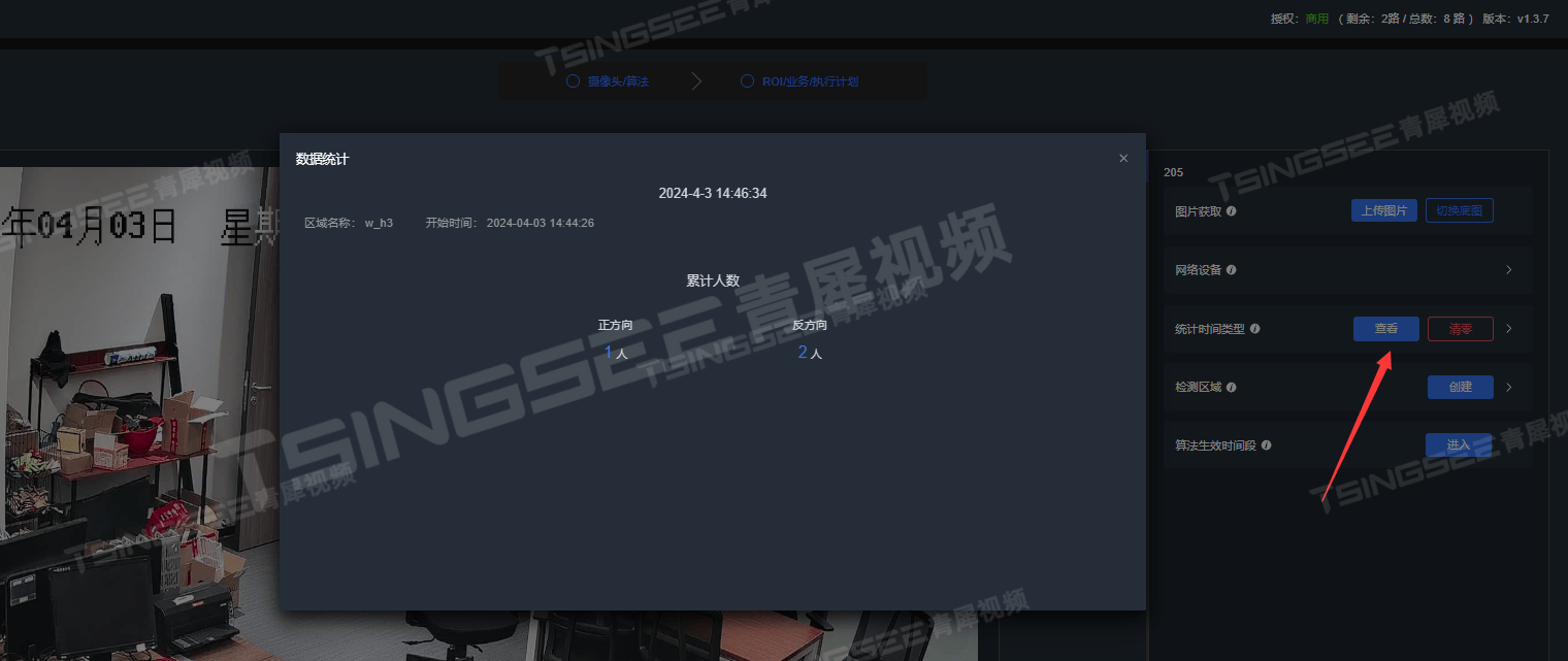 5)算法配置完成后,我们可以在【智能监控】-【实时监控】里查看累计的人员进出数量。