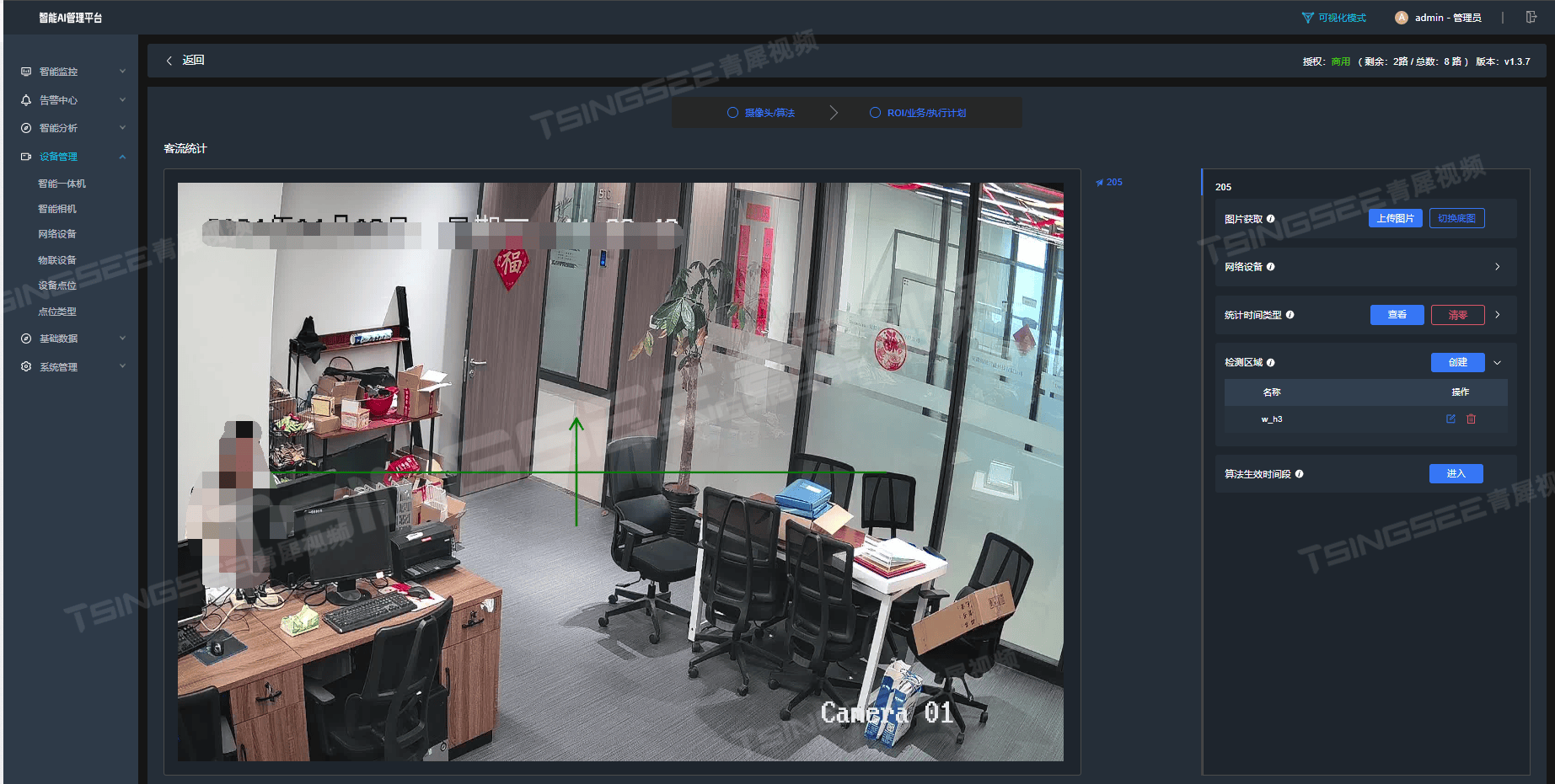 其中,客流统计AI算法是指自动检测和统计设定区域内人头过线的数量,可以应用在景区、商场楼宇、车站、机场等场景中。正在使用TSINGSEE青犀AI智能分析网关V4的用户,可能会使用到【客流统计】这一算法,但有很多用户却并不清楚这一算法的配置和使用。今天我们来介绍一下:智能分析网关V4如何配置客流统计算法?