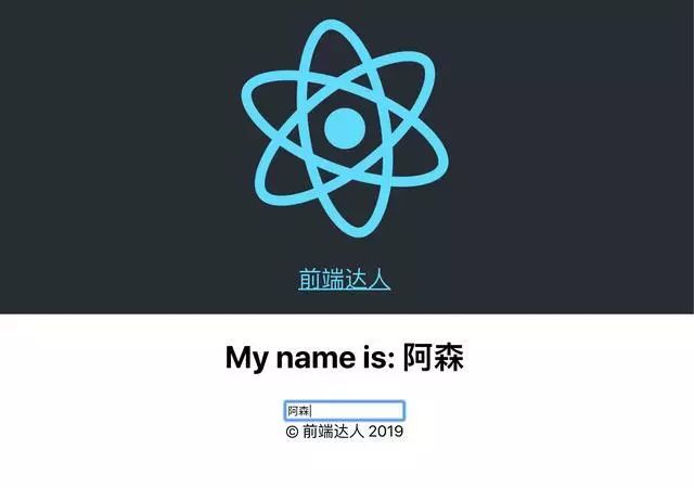 7、最后别忘记了,我们需要在App.js 引入 MyName 组件,进行渲染组件,如果一切顺利的话,你将会看到如下图所示的效果: