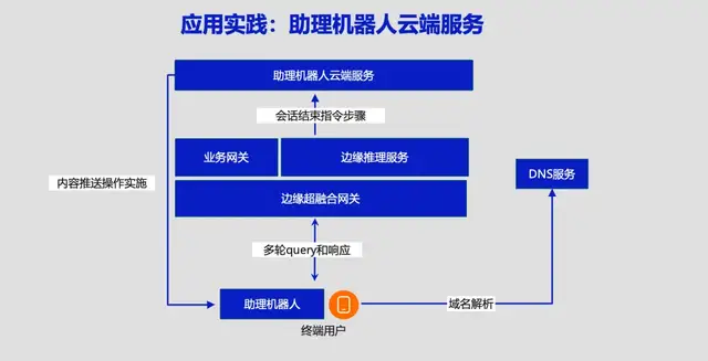 让我们来看一个实际运行在我们边缘容器云平台上的业务案例。这是一个手机应用内机器人,它允许用户通过多轮的对话交互来在边缘执行推理任务,最终生成操作意图。这个意图随后被上传到中心服务器,以执行全局业务查询逻辑,紧接着操作将被下发至用户终端执行具体任务,如帮助用户完成特定动作,并将结果展现给用户。在这个业务案例的实施过程中,我们关键地利用了先前提及的域名服务导出的就近服务功能、边缘数据集分发、以及边缘镜像加速等核心能力。