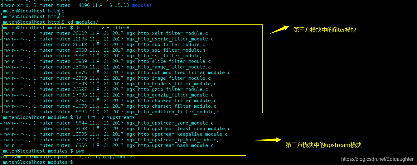 官方提供的非框架的(可有可无的模块)放在/home/muten/module/nginx-1.13.7/src/http/modules