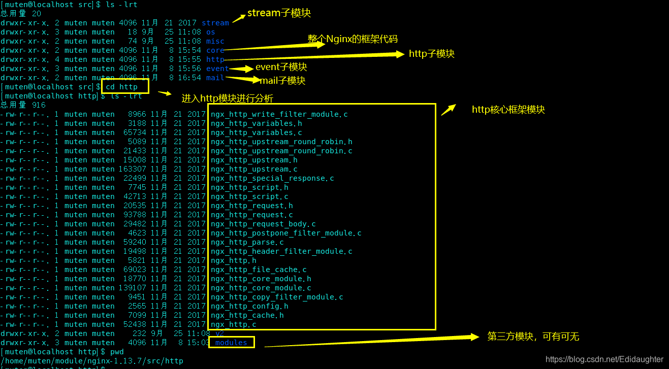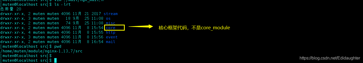 所有的框架代码及http_core_module都是放在/home/muten/module/nginx-1.13.7/src/http