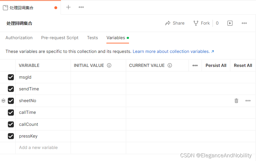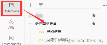 3、在postman中的Collections选项创建一个处理集合(集合里包含了一个流程需要调用的接口集)