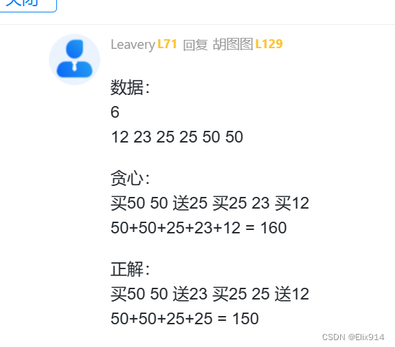 官方题解的代码,上述测试用例测出来是160,我自己的代码测出来是150,50+50送23,25+25送12,50+50+25+25=150