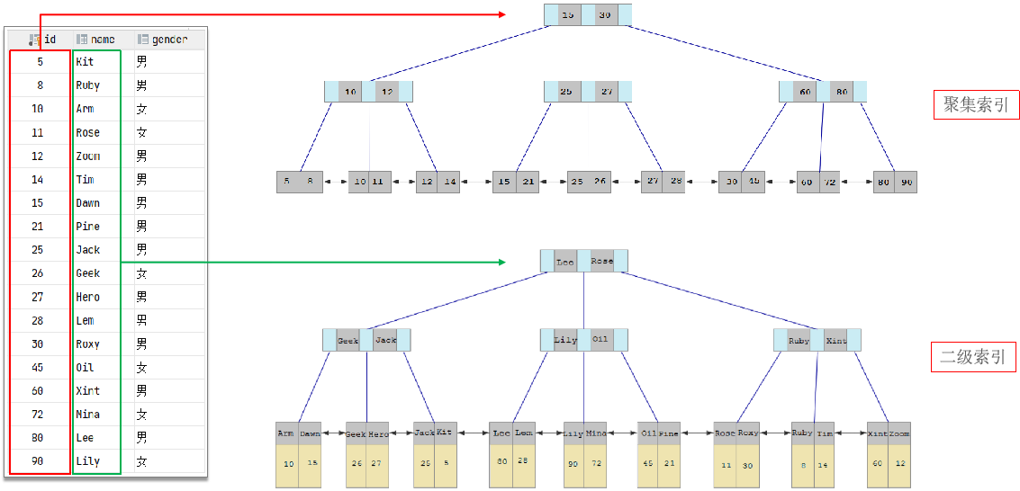 聚簇索引主要是指数据与索引放到一块,B+树的叶子