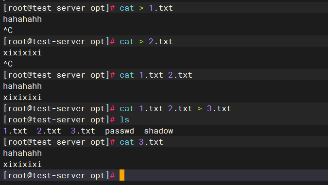 将几个文件合并为一个文件:cat file1 file2 > file3