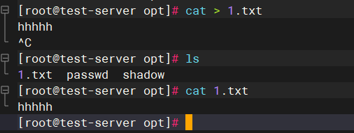 从键盘创建一个文件:cat > filename 只能创建新文件,不能编辑已有文件.
