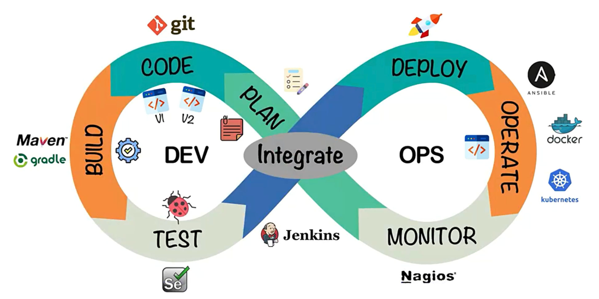 INTEGRATE:然后将监控阶段收到的反馈发送回PLAN阶段,整体反复的流程就是DevOps的核心,即持续集成、持续部署。