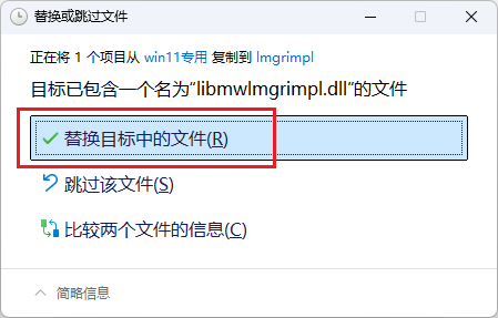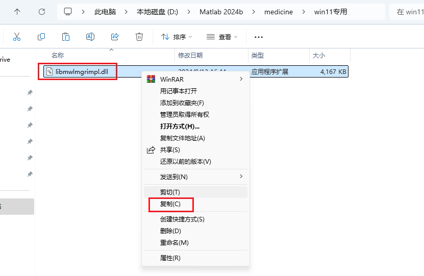20、选中文件“libmwlmgrimpl.dll”,点右键选“复制”