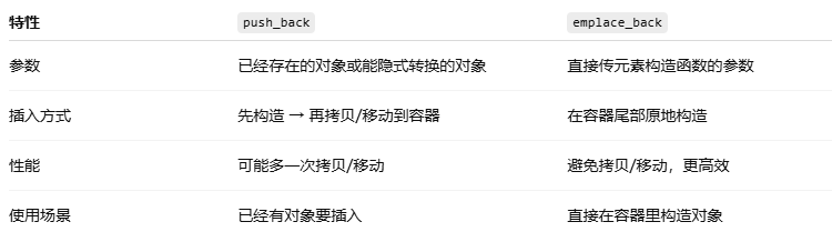 作用:在容器尾部 就地(in-place)直接构造对象,而不是先构造再拷贝/移动。
