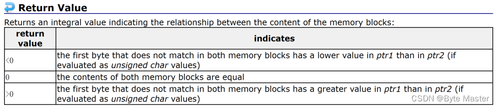 int memcmp ( const void * ptr1, const void * ptr2, size_t num );
