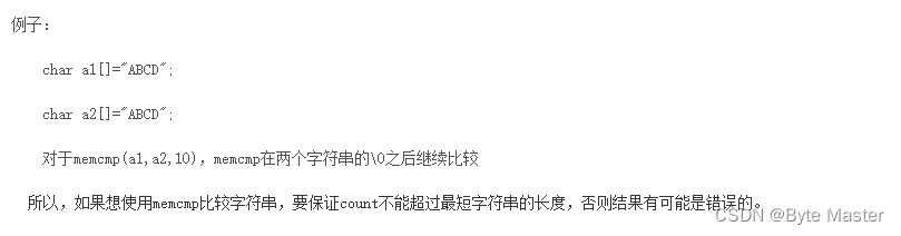 对于memcmp(),如果两个字符串相同而且num大于字符串长度的话,memcmp不会在\0处停下来,会继续比较\0后面的内存单元,直到_res不为零或者达到num次数。