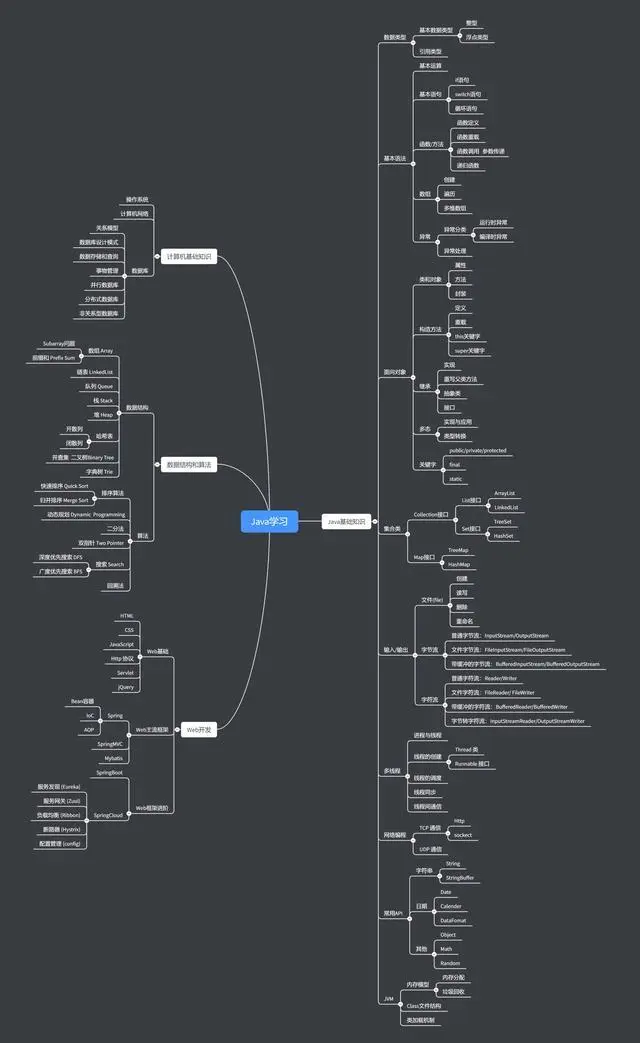 大家可以把Java基础,JVM,并发编程,MySQL,Redis,Spring,Spring cloud等等做一个知识总结以及延伸,再去进行操作,不然光记是学不会的,这里我也提供一些脑图分享给大家: