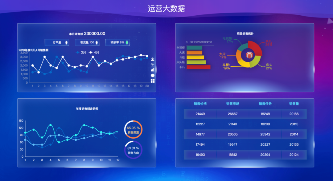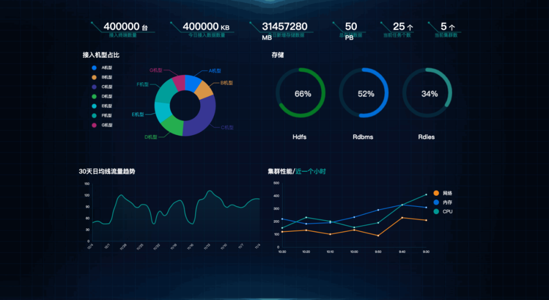 左下角的曲线面积图,科技感满满。