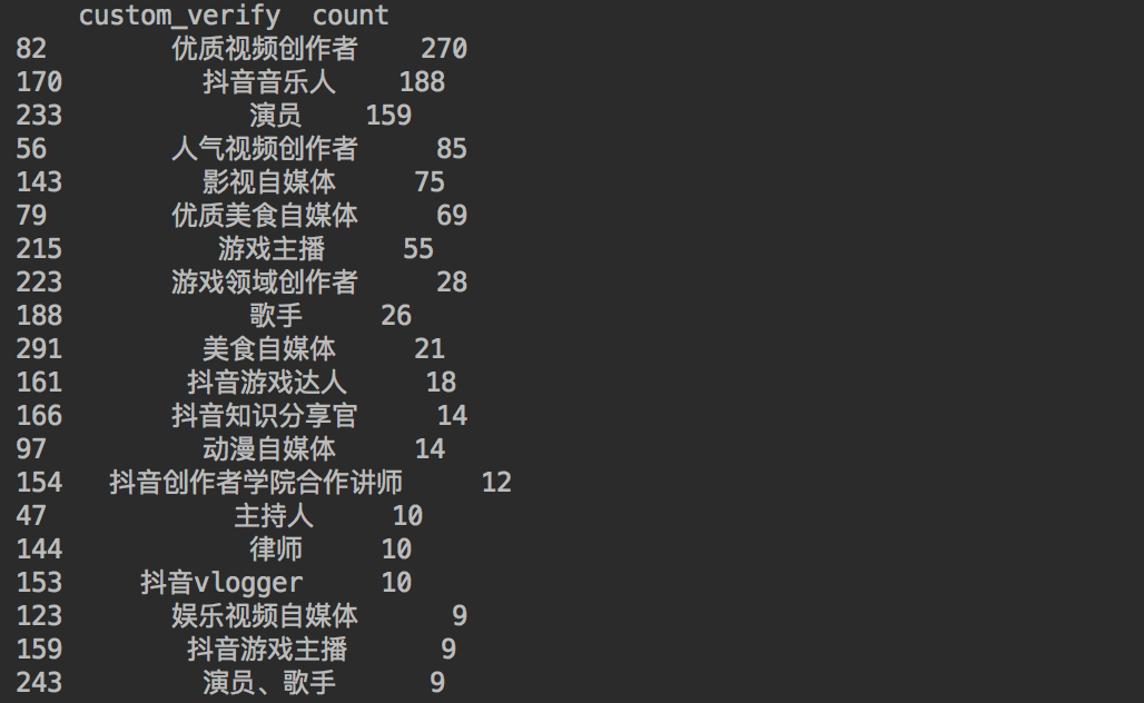 通过代码查询一下大V们的认证情况。