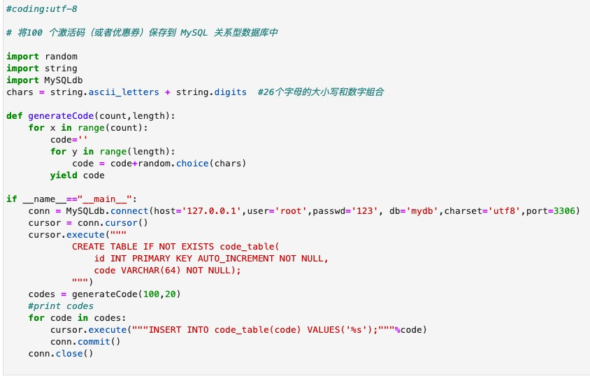 第一个项目是利用python生成激活码,并且保存在两个不同对数据库中;