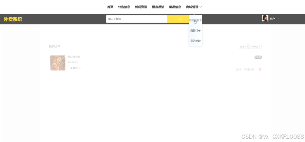商城管理:管理员可管理自己的商城信息,包括对菜品信息、分类列表、订单信息、订单配送等信息进行管控。可编辑、发布、删除菜品信息;并且对菜品信息进行分类;处理订单信息,确认和更新订单支付状态,进行配送;更新和跟踪订单配送及签收情况。