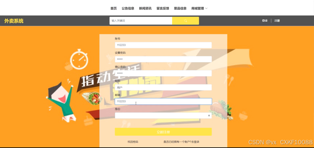 注册登录:提供注册、登录功能,可注册成为系统用户,使用账号密码可登录系统前台。