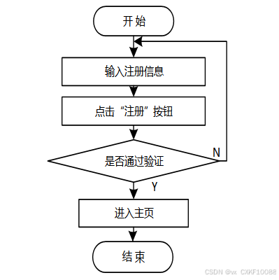 未有账号的用户可进入注册界面进行注册操作,用户注册流程图如下图所示。