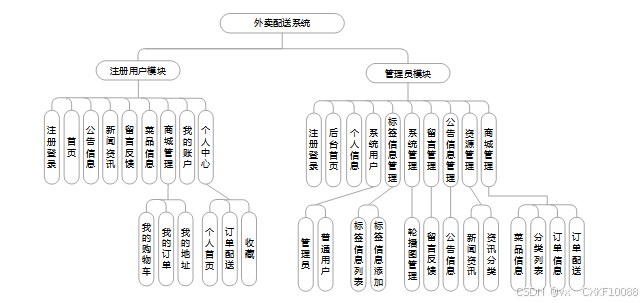 外卖系统通过用户和管理员各自的功能模块互相配合,构建了一个高效、便捷且安全的外卖销售、点餐、配送管理服务平台。通过详细分析具体的功能模块,可以帮助用户更好地理解和使用外卖系统。具体功能分析如下: