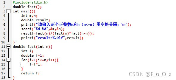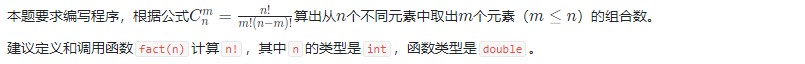 按照格式“result = 组合数计算结果”输出。题目保证结果在double类型范围内。