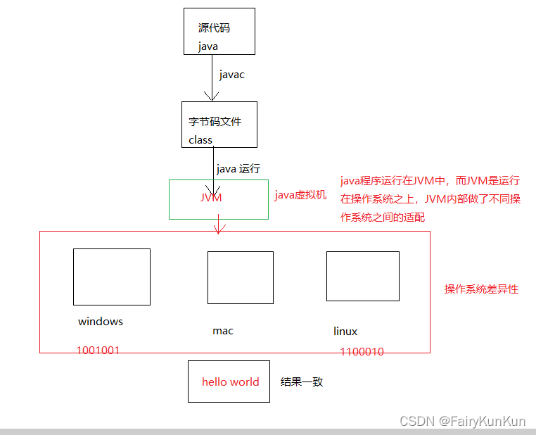 java程序运行在JVM(java虚拟机)中,而JVM运行在操作系统之上,JVM内部做了不同操作系统之间的适配,所以,操作系统之间的差异性并不会影响输出结果的一致性。