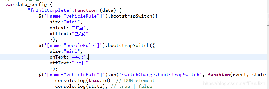 这两天需要在datatables每列加一个滑动按钮,按钮放到datatable外可以正常显示,一放到里面就没有效果,后来发现bootstrap-switch初始化的时候datatable还没有加载出来,页面中按钮也不存在,这个时候就需要用到了datatables里的回调函数然后把bootstrap-switch初始化放到回调函数里面